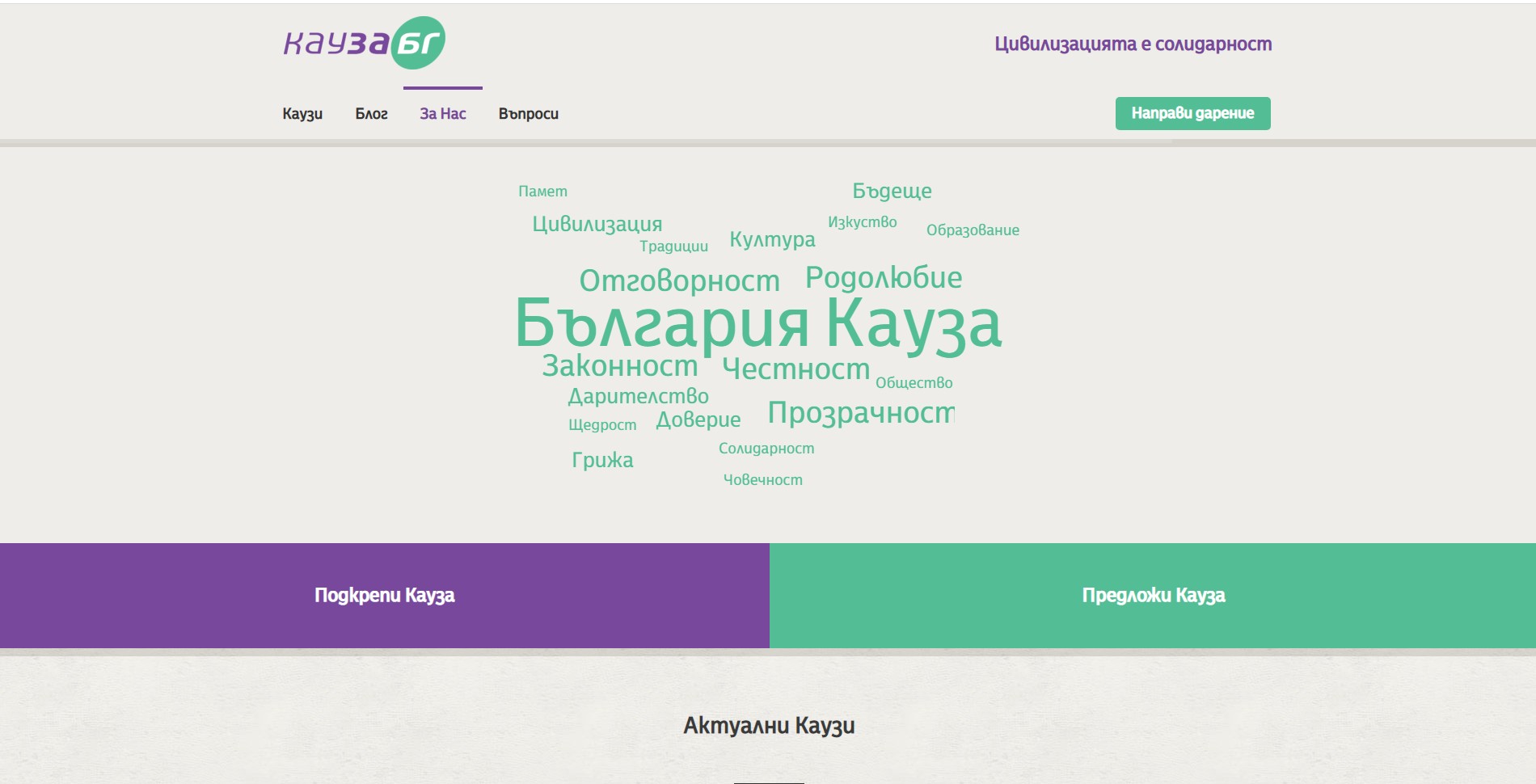 Националният дарителски фонд „13 века България“ създаде нов сайт КауЗа БГ за дарителски кампании в подкрепа на обществено значими каузи в областта на образованието, науката, културата, възстановяването и опазването на исторически и културни ценности, здравеопазването и други социални сфери. Юридически и физически лица могат да предлагат инициативи в обществена полза, които след одобрение от Управителния съвет на Фонда, да бъдат реализирани като дарителски кампании на сайта.